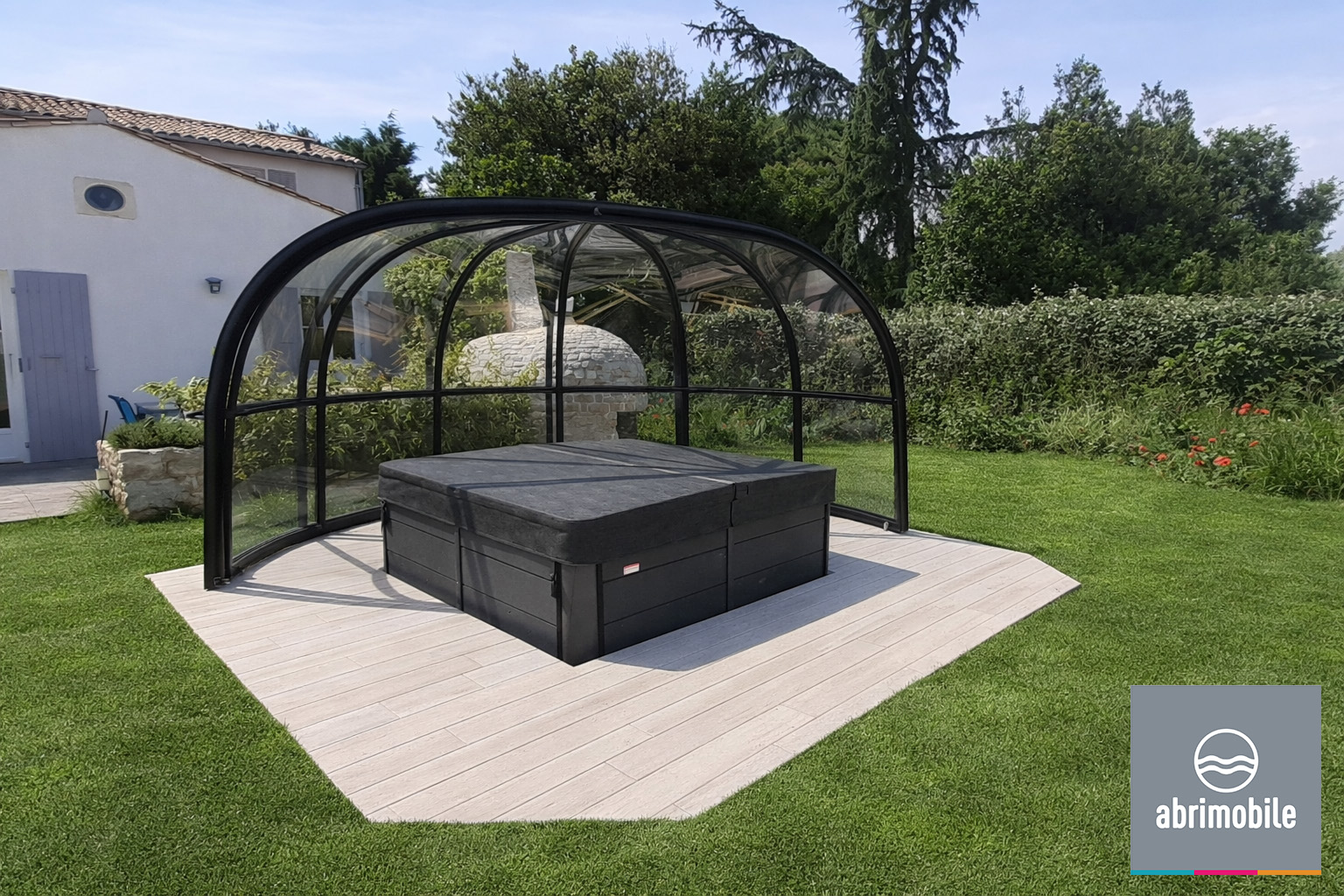 Nos modèles d’abris de spas permettent à nos clients d’utiliser leur spa sans se préoccuper des contraintes climatiques. A tout moment de la journée ou de la soirée, l’abri de spa s’occupe de tout !